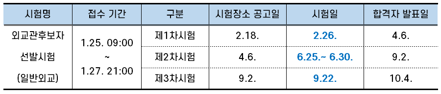 ▣ 2022년 외교관후보자 선발 시험 일정