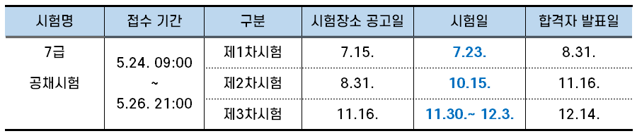 ▣ 2022 7급 국가공무원 시험 일정