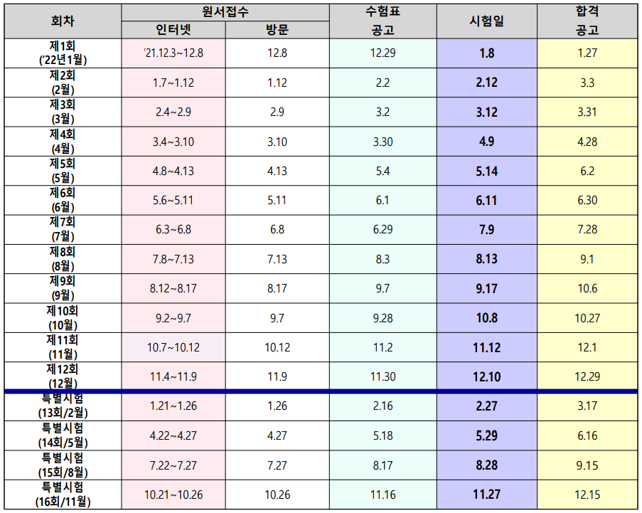 2022년에는 정기시험 외에 총 4번의 특별시험을 시행하는데요. 2022년 2월, 5월, 8월, 11월 넷째 주 일요일에 ITQ 특별시험을 실시합니다.
