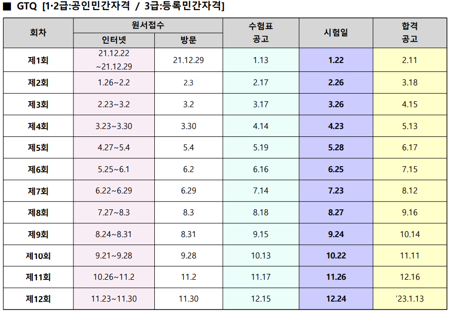 2023년 GTQ, GTQi, GTQid 시험 일정 바로가기