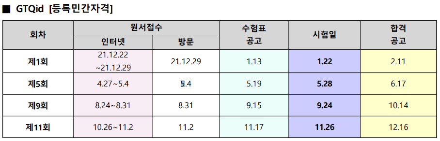 2022년 GTQ, GTQi, GTQid자격증 시험 일정에 대해 정리했습니다.