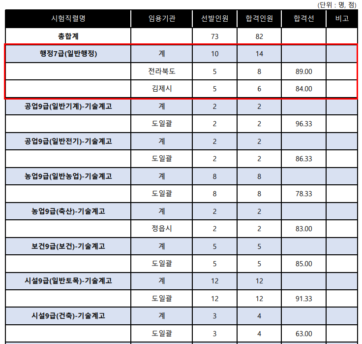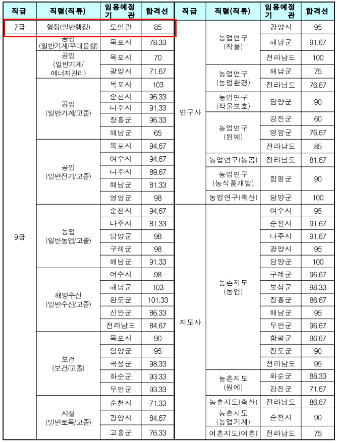 1. 전라북도 지방직 7급 합격선 및 경쟁률