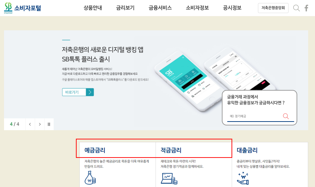 저축은행중앙회의 소비자 포털에서는 저축은행의 예금금리와 적금금리를 비교 공시하고 있습니다.