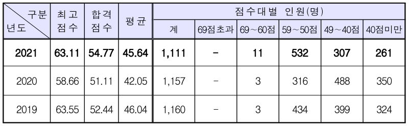 | 제58회(2021) | 63.11 | 54.77 |