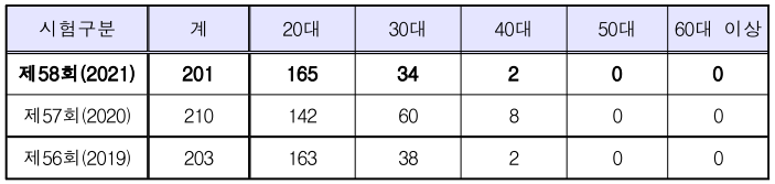 | 시험구분 | 계 | 20대 | 30대 | 40대 |