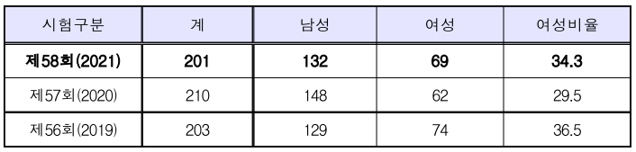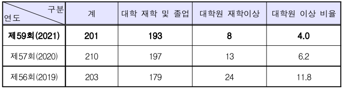 | 제58회(2021) | 201 | 165 | 34 | 2 |