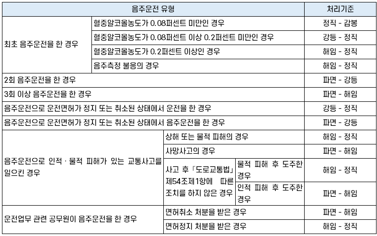| 음주운전 유형 | 처리기준 | |||