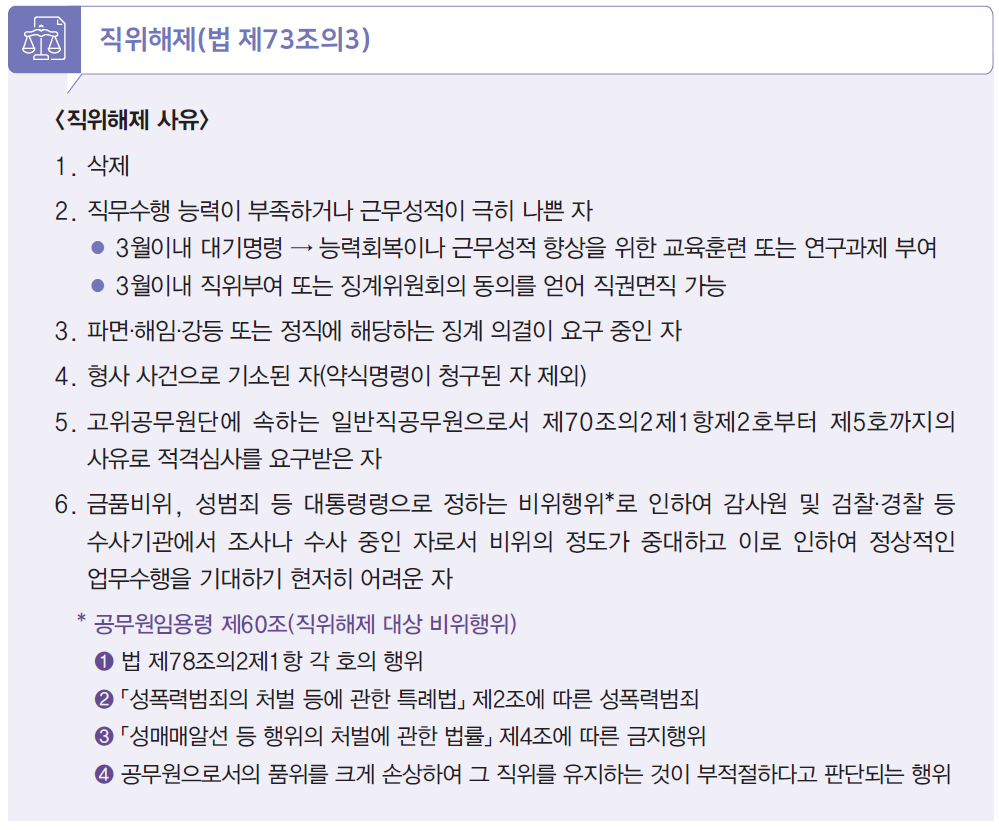 | 해임 | 공무원 신분을 완전히 배제 | |