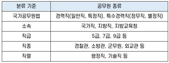 | 분류 기준 | 공무원 종류 |