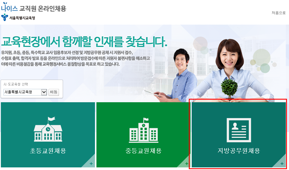| 교육공무원 | 교원임용시험 | 시도교육청 | 나이스교직원온라인채용사이트 |