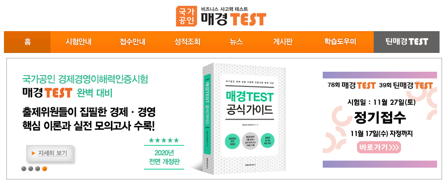 | 매경 TEST | 틴매경TEST | 시험일 | 원서접수기간 | 성적발표일 |