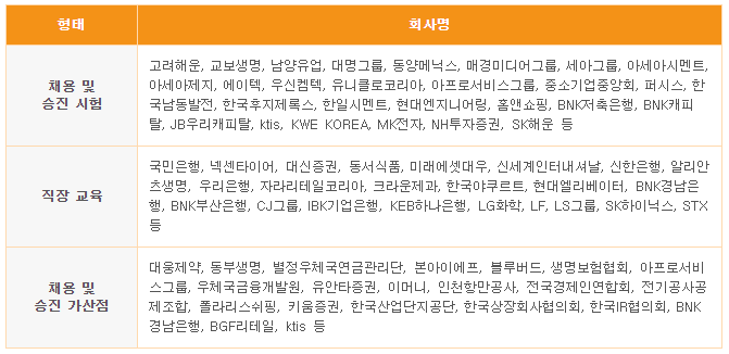 매경 TEST는 경제·경영 기초적인 개념과 지식은 물론, 응용력과 전략적인 사고력을 입체적으로 측정하는 비즈니스 사고력 테스트이기 때문에 교보생명, 남양유업, 동부생명, 인천항만공사, 키움증권 등 다양한 기업의 채용 및 승진 시험에 활용되고 있습니다.