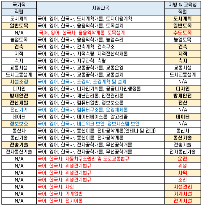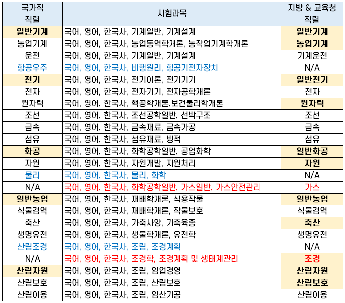 | 전산기기 | 국어, 영어, 한국사, 컴퓨터구조론, 운영체제론 | N/A |