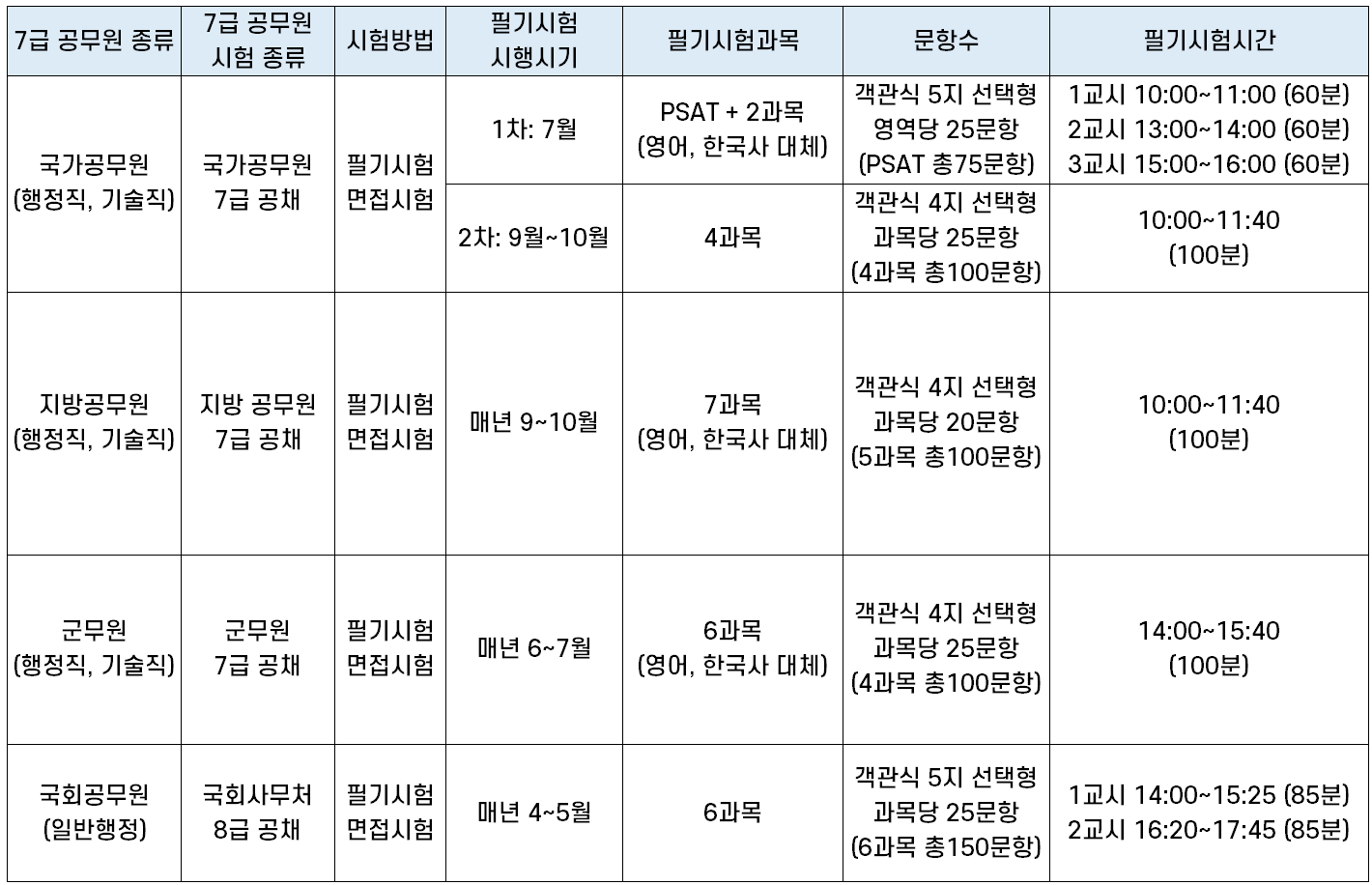 7급 공무원 시험 종류 | |||
