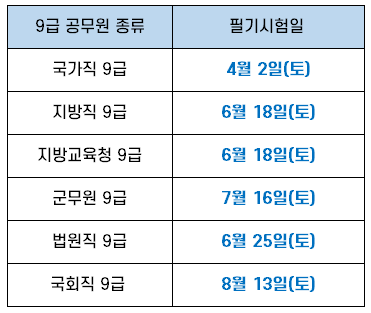 | 9급 공무원 종류 | 필기시험일 |