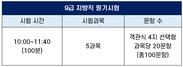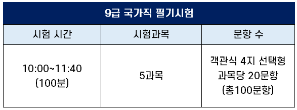 9급 공무원 시험 종류 및 시험 과목 한 눈에 비교 정리