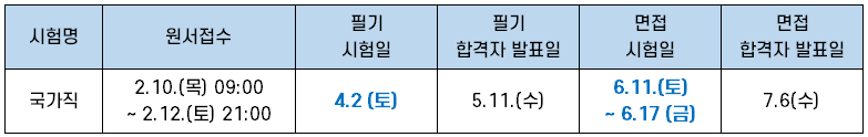 | 국가직 9급 | 4월 2일(토) |