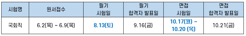 | 국회직 9급 | 8월 13일(토) |