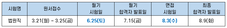 | 법원직 9급 | 6월 25일(토) |