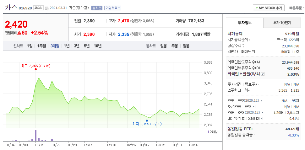 19. 카스 (016920 코스닥)