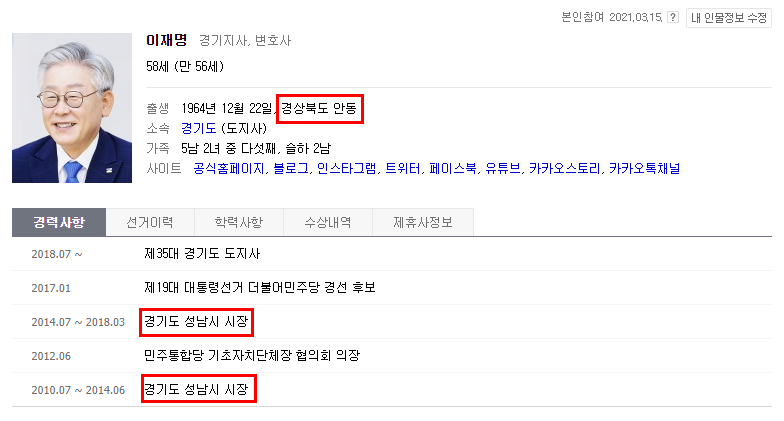 이유: 류종묵 회장이 이재명 지사 고향인 경북 안동 출신이라고 알려짐