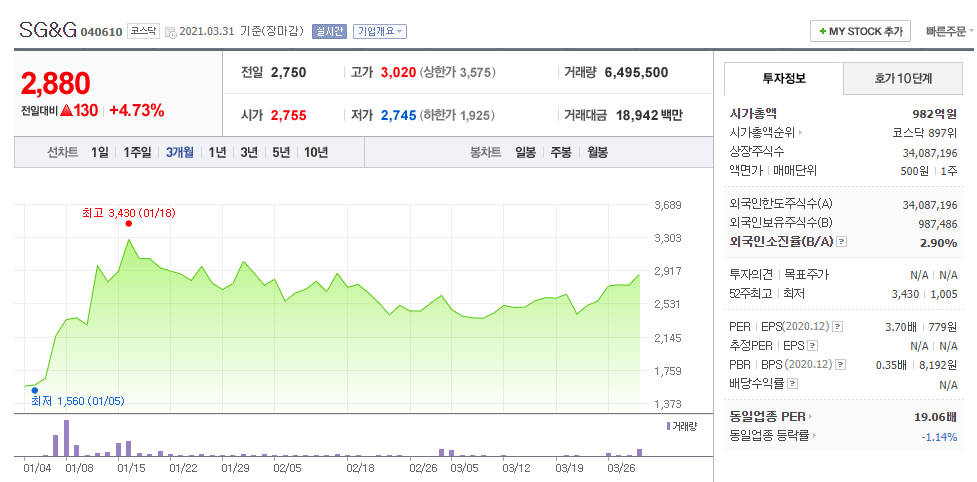 35. SG&G (040610 코스닥)