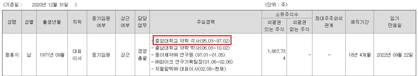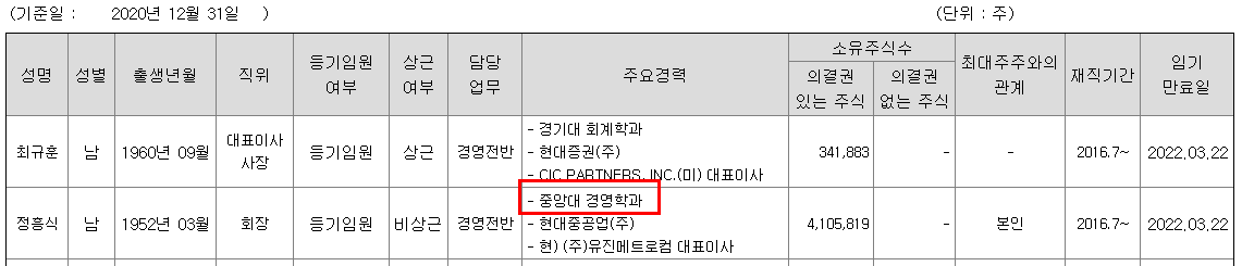 이유: 최대주주인 최장수 대표이사가 이재명 지사와 중앙대 동문