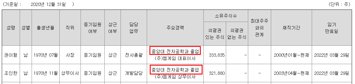 이유: 최대주주인 배환국 대표이사가 이재명 지사와 중앙대 동문. 대표이사외에 대부분의 임원이 중앙대 석박사 출신.