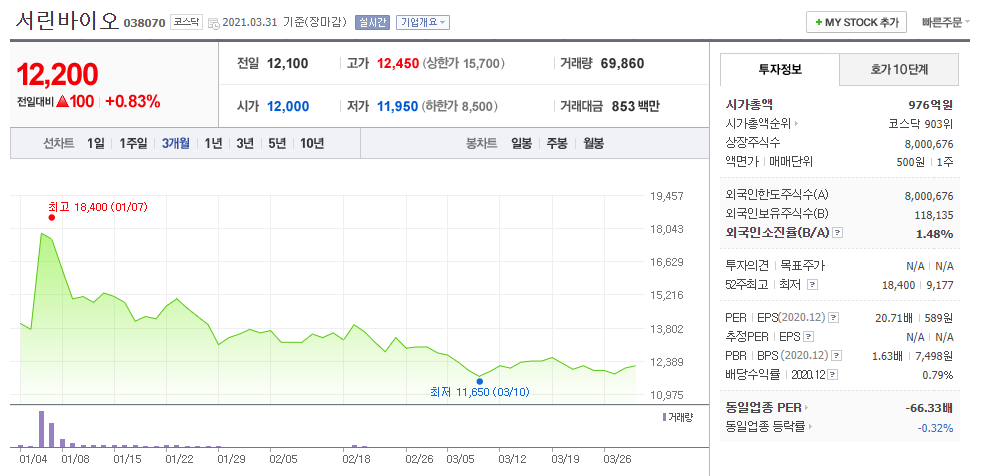 5. 서린바이오 (038070 코스닥)