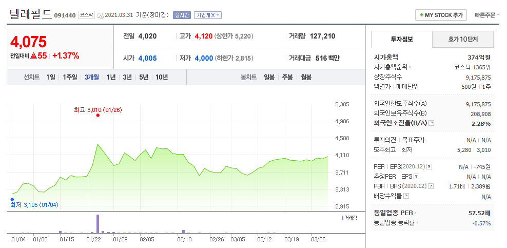 7. 텔레필드 (091440 코스닥)