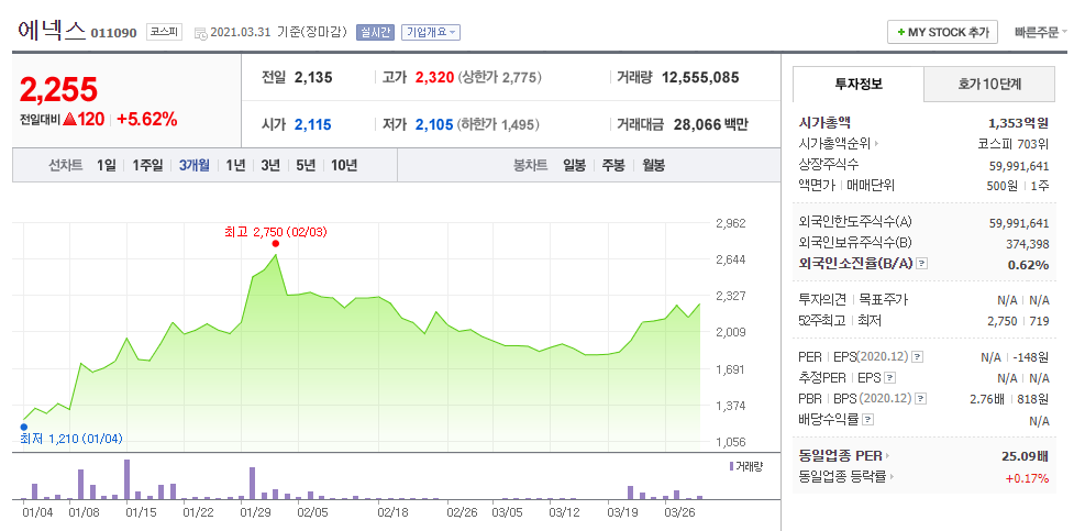 34. 에넥스 (011090 코스피)