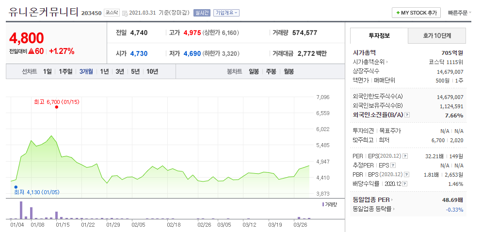 15. 유니온커뮤니티 (203450 코스닥)