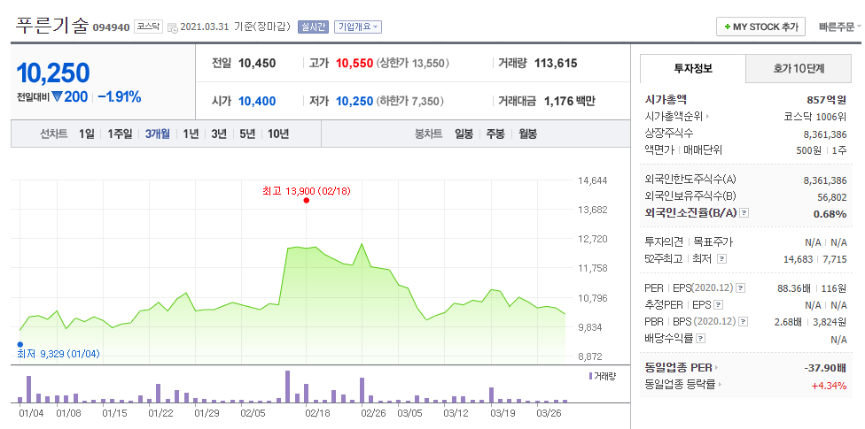 31. 푸른기술 (094940 코스닥)