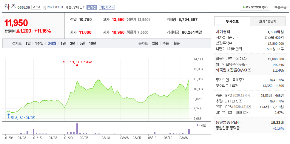 8. 하츠 (066130 코스닥)