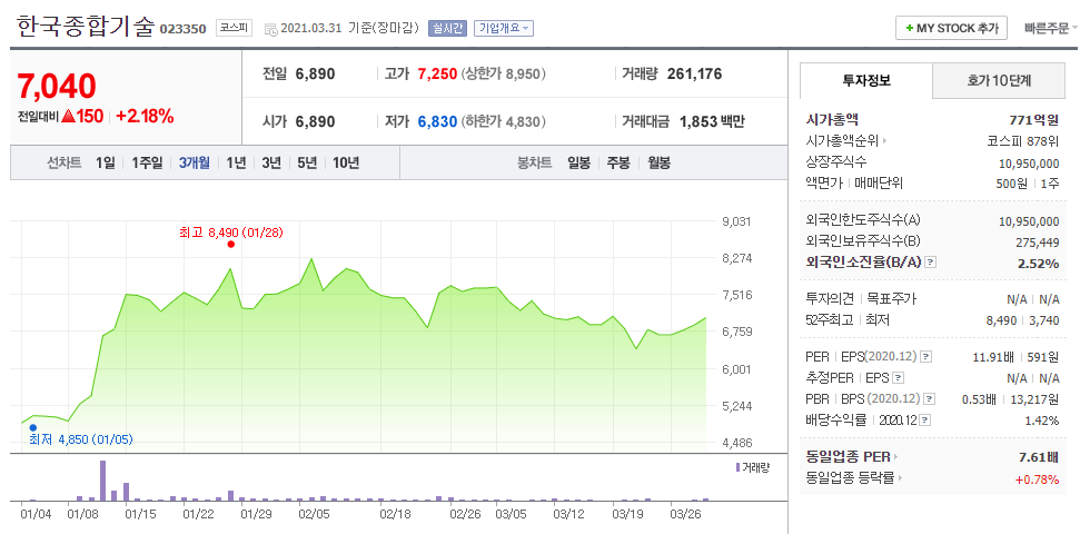 36. 한국종합기술 (023350 코스피)