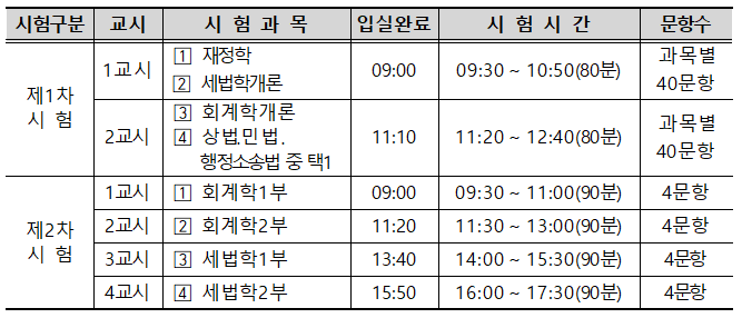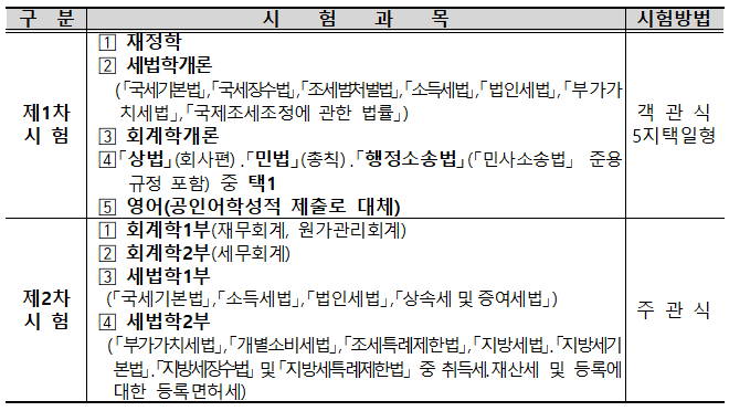 ※ 세무사 1차 2차 시험 과목