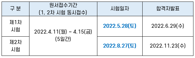 ◎ 1차 시험일: 2022. 5. 28(토) 09:30~12:40