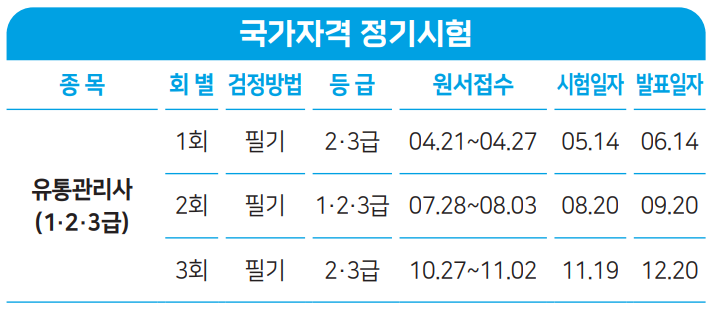 유통관리사 2급 시험은 1년에 3회 시행되는데요 2022년 유통관리사 2급 시험일정은 아래 표와 같습니다.