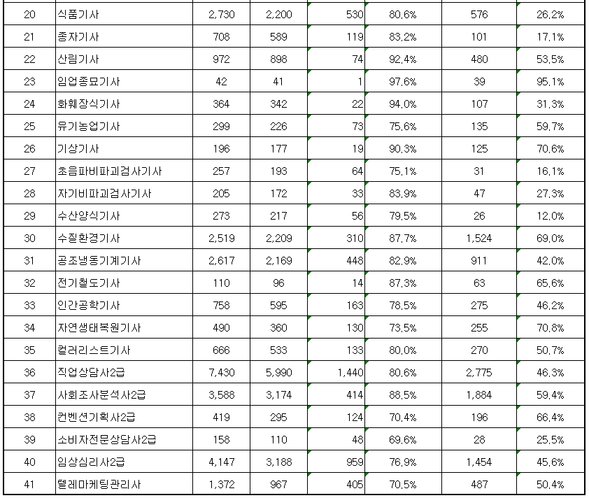 | 39 | 자연생태복원기사 | 360 | 255 | 70.8% |