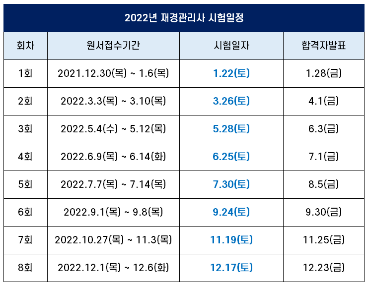 2022년 재경관리사 시험일정