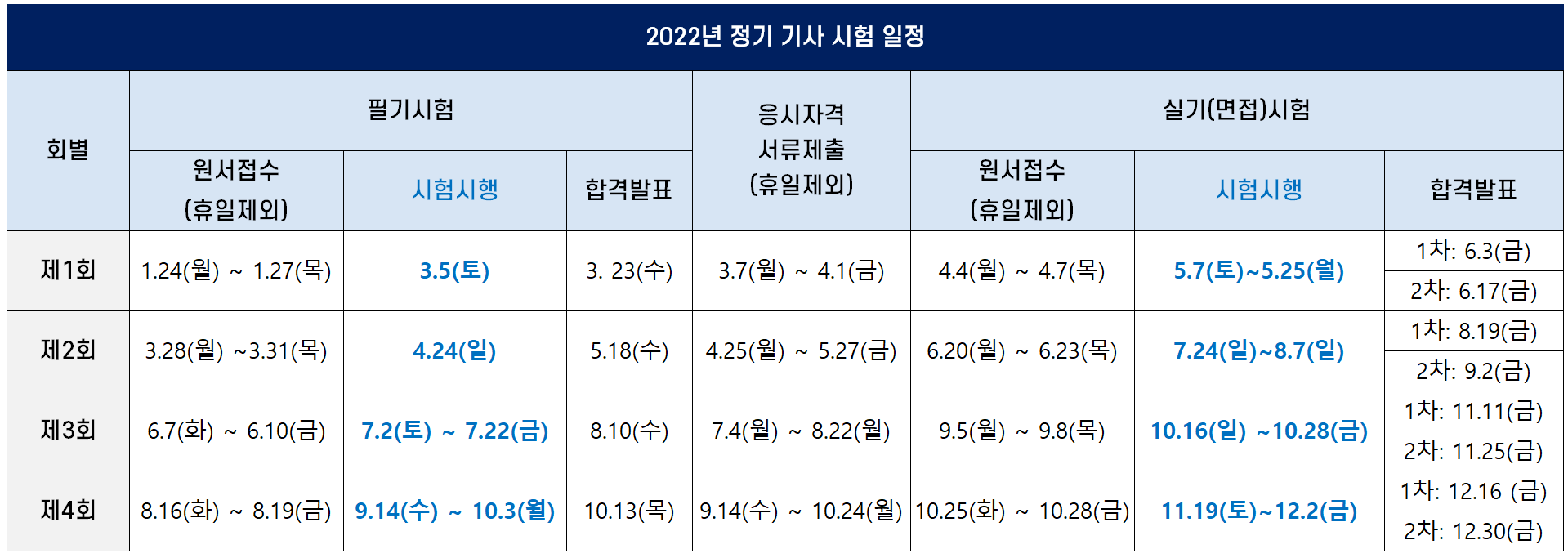 2022년 정기 기사 시험 일정