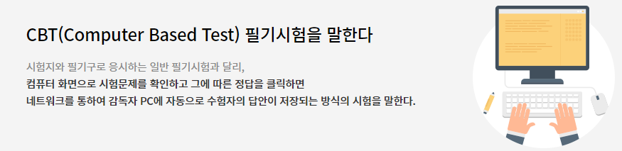 정보처리기사 필기시험은 2022년 3회 필기시험부터 컴퓨터 화면으로 시험 문제를 확인하고 마우스로 정답을 클릭해 제출하는 CBT(Computer Based Test) 방식으로 전환되어 현재는 CBT 방식으로만시행됩니다.