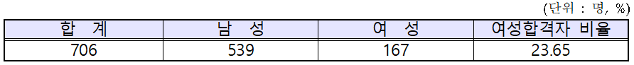 | 합 계 | 남 성 | 여 성 | 여성합격자 비율 |