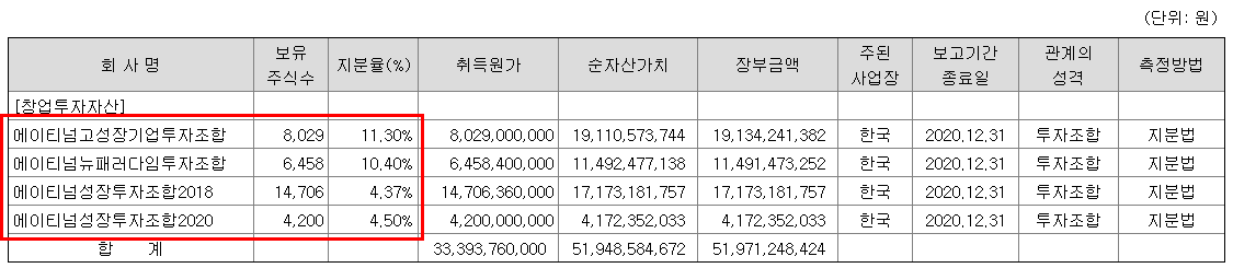 에이티넘인베스트가 두나무에 투자한 것은 에이티넘고성장투자조합을 통해서입니다. 두나무의 2019년 감사보고서의 주 현황을 보면 다음과 같이 에이티넘고성장투자조합으로 나와 있습니다.