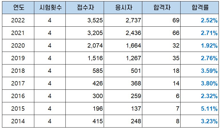 ADP 시험은 응시자격이 까다롭기 때문에 시험 접수자가 많지는 않지만, 매년 접수자가 증가해 2022년에는 3,525명이 ADP 시험 원서접수를 했습니다.