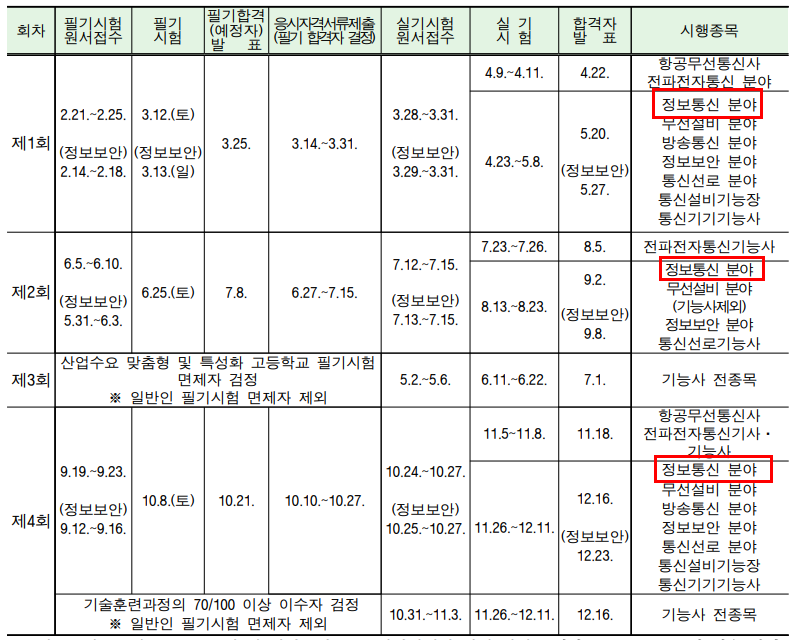 정보통신기사 시험 일정 안내