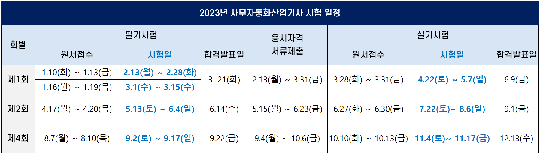 2023년 사무자동화산업기사 시험일정