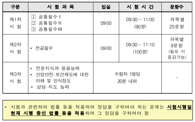 - 원서접수는 Q-Net 산업안전지도사 및 산업보건지도사 자격시험 홈페이지를 통한 인터넷 접수만 가능