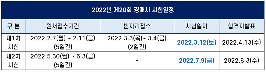 2022년 제20회 경매사 시험일정
