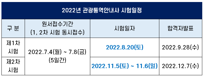 2022년 관광통역안내사 시험 일정